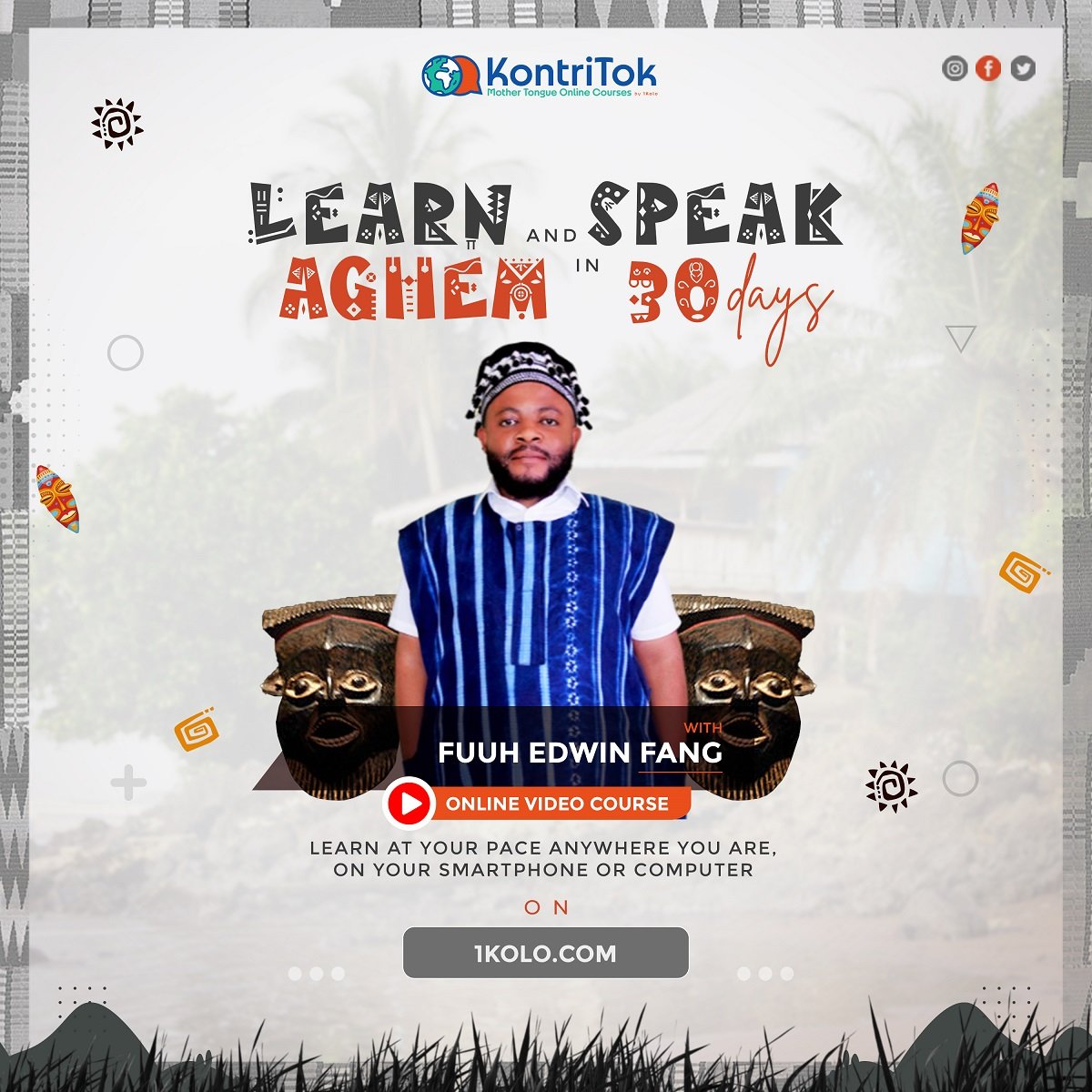 Reconnect with your roots. Learn Aghem (Wum Central – Menchum) in 30 days through lifetime access to 30 lively video lessons. Learn at your pace and convenience.
